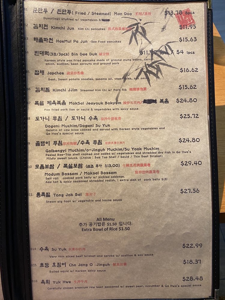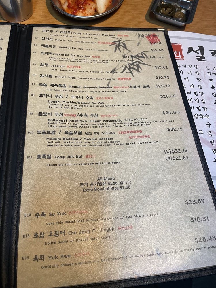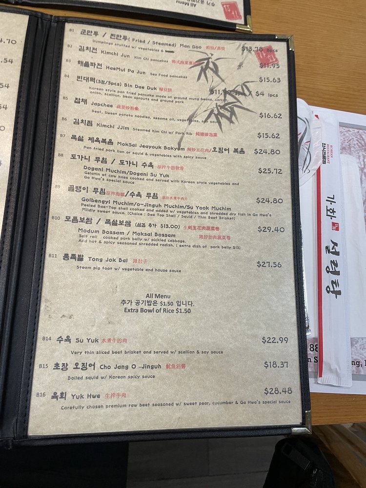 Gahwa Korean Restaurant, nestled in Flushing, NY, offers a cozy dining experience with a wide array of authentic Korean dishes. Known for their Bossam with tender meat and generous portions, this restaurant is a hidden gem worth the visit. The house specialties like Ga Hwa Sui Long Tong and Bimbim Bap are flavorful and hearty, while the oxtail soup and tendon salad are must-tries. The simple yet inviting ambiance, coupled with quick and friendly service, adds to the overall dining experience. With a focus on traditional Korean cuisine, Gahwa Korean Restaurant stands out as a top choice for a satisfying meal. Whether you're a fan of hot soups or savoring BBQ dishes, this restaurant offers something for everyone. Don't miss out on trying their delicious Japchae and pa jun for a truly delightful dining experience.